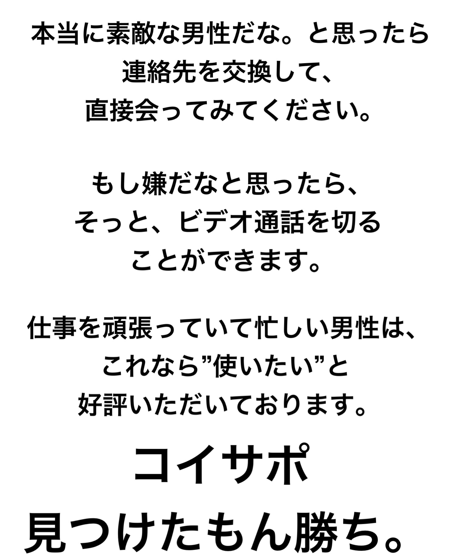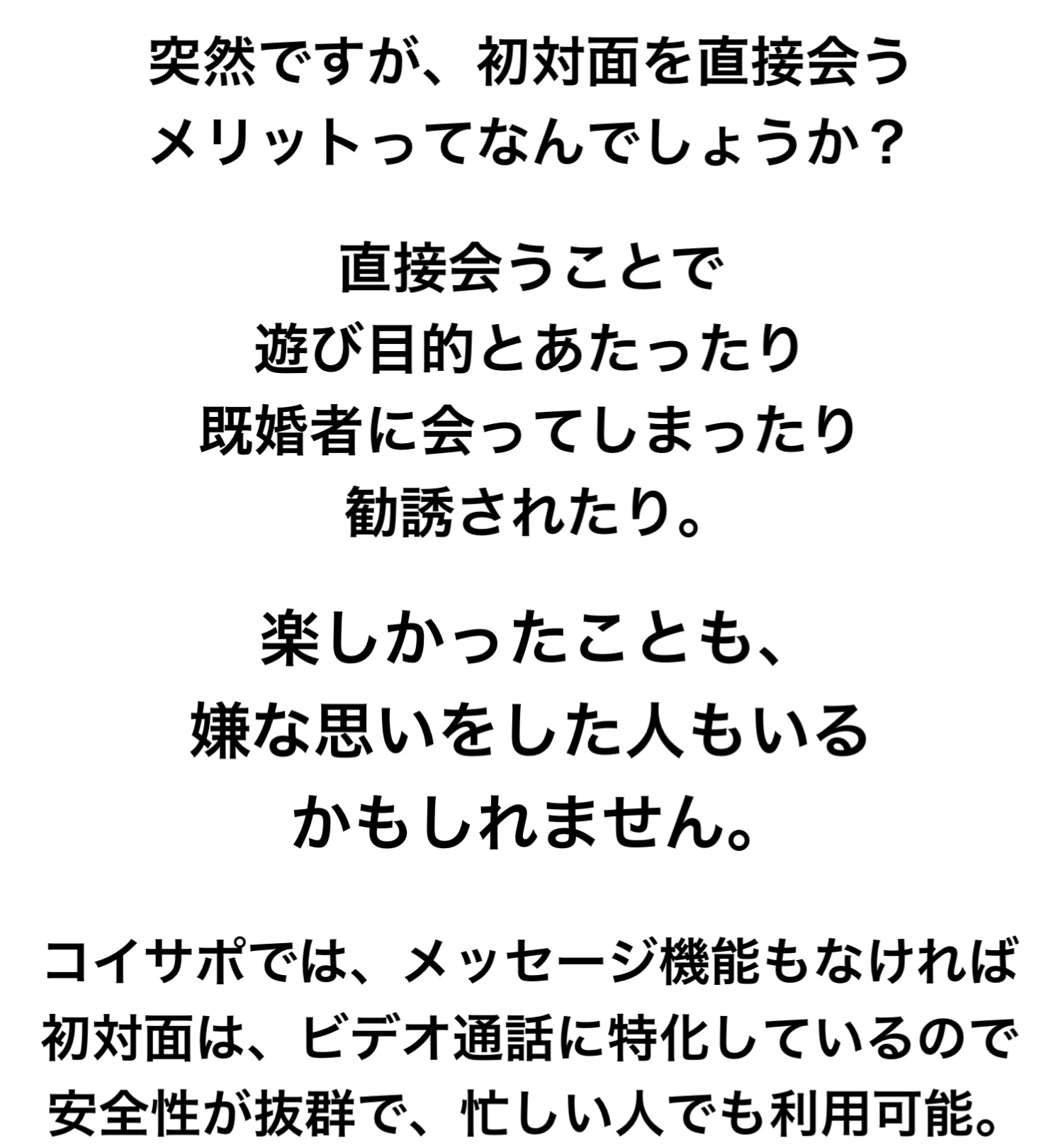 - サクラはいますか? いません。オンラインで必ず一度オンライン初デートいただきますので怪しい勧誘に会う可能性もとても低いです。